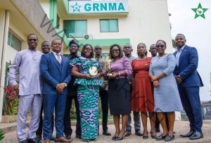 Mrs. Naomi Oyoe Ohene Oti, the 2025 recipient of the esteemed Aster Guardians Global Nursing Award, has formally presented her award to the President and members of the National Executive Committee (NEC) during a courtesy visit.